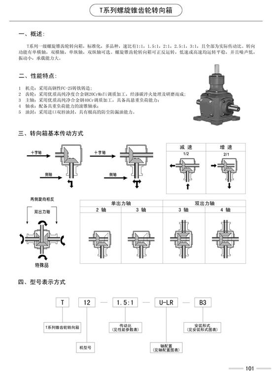 產品型號:T2、 T4 、T6 、T7 、T8、 T10、 T12、 T16 、T20、 T25 詳細說明:t系列螺旋傘齒輪,采用軸輸入,軸輸出結構,可單軸、多軸輸出,可正反方向旋轉,結構緊湊,占用空間小。因本公司專業生產銷售各類減速機及支架,大小品種規格繁多,價格按型號及規格的不同而不等,而在網上不能將同一系列的多個型號、多種規格一一列出