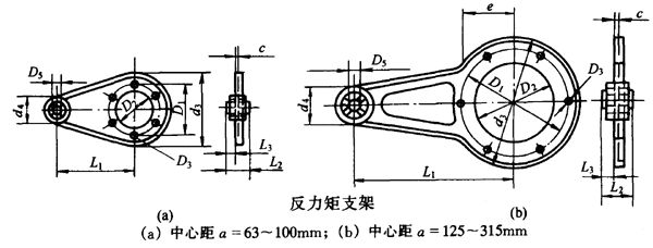 另一端與固定支承聯接(見下圖)。用戶如采用反力矩支架來平衡反力矩,應根據設備安裝要求同減速器一起向制造廠訂貨。